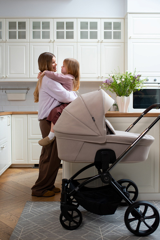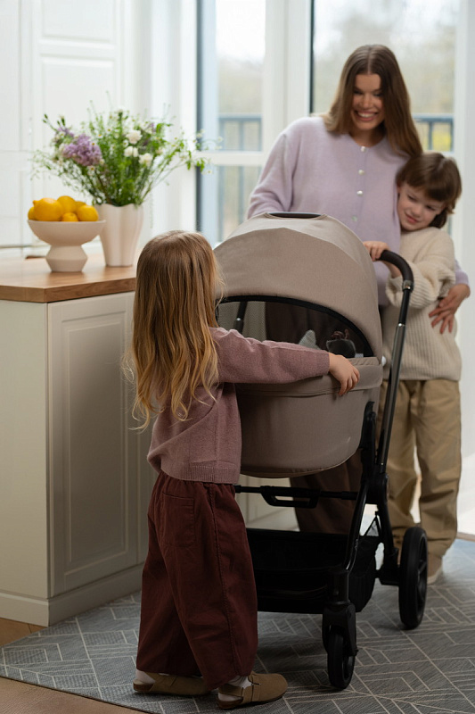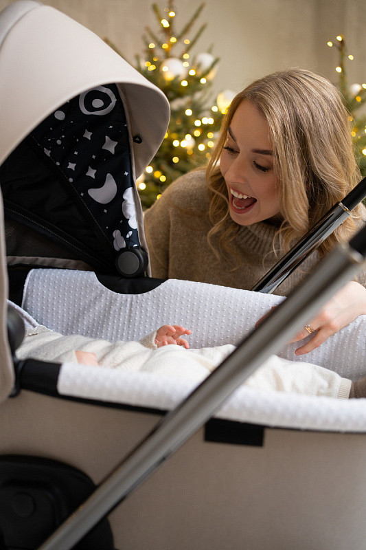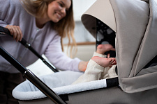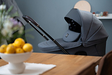 Широкое сиденье обеспечивает малышу комфорт даже в теплой верхней одежде. Летний вкладыш делает прогулки особенно приятными в жаркую погоду и межсезонье, а также защищает обивку от загрязнений. Спинка регулируется в нескольких положениях, включая полностью горизонтальное, благодаря чему коляска идеально подходит как для бодрствования, так и для сна.