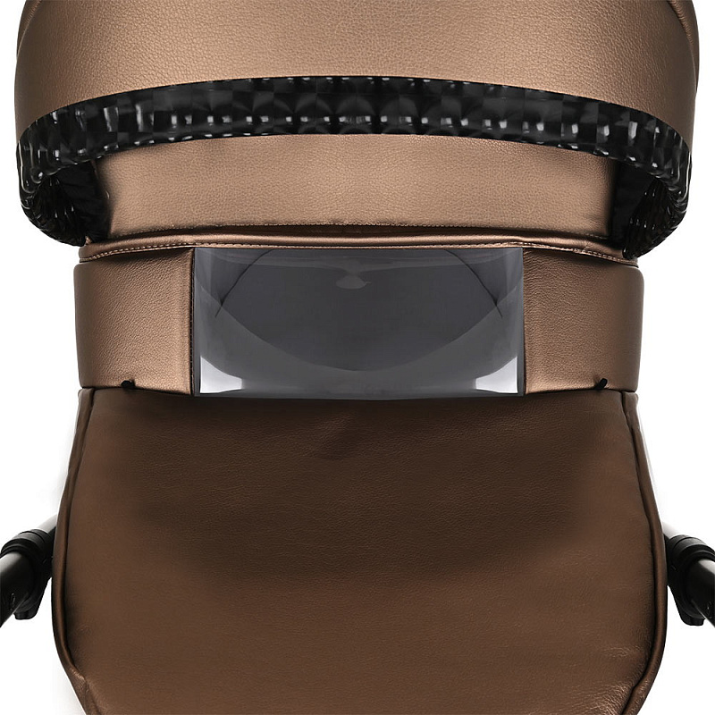 Люлька широкая и глубокая, создает приятный «обволакивающий» эффект для малыша. Он находится будто в коконе, уютном и теплом. Ортопедический дышащий кокосовый матрасик, внутренние борта имеют чехлы из натуральной хлопковой ткани. Подголовник регулируется по высоте, есть панорамное окошко для мамы, накидка от ветра и бортик для малыша. Внешняя ткань из высококачественной экокожи и материалов с эффектом 3D определённо выделится из толпы!