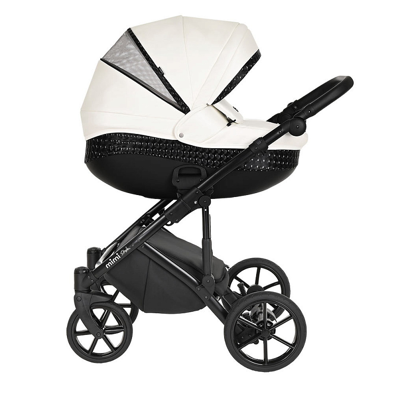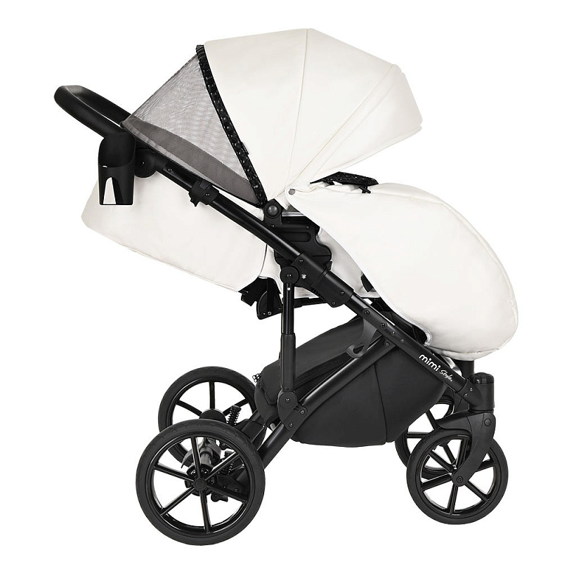 Детали коляски гармонично сочетаются друг с другом – шасси с матовым покрытием и хромированные колёса придают коляске впечатляющий вид. Шасси с этим покрытием более гладкое и более устойчивое к износу краски при очистке.Это специальное покрытие менее подвержено к образованию пятен и грязи. Хромированные диски имеют ту же отделку, как и рама. Амортизированная, легко складываемая рама с матовой отделкой и блестящей эко кожей делает коллекцию Mimi Style Galaxy лучшим сочетанием эксклюзивного дизайна и функциональности!При поездках и перемещениях, в помещениях или на улице очень важно, чтобы коляска легко складывалась и занимала как можно меньше места. Задняя система амортизации адаптируется к весу ребёнка и поглощает неровности дороги. Регулируемая система амортизации может быть настроена как предпочтительная, в зависимости от дорожного покрытия, чтобы обеспечить более жесткое или более мягкое поглощение неровностей.Дополнительная амортизация обеспечивается колёсами RealGel™ нового поколения. Эти колёса проще обслуживать, нет необходимости проверять давление в камерах, нет опасности что вы проколете колесо. Новую раму также можно складывать вместе с прогулочным блоком, что делает жизнь родителей ещё проще. Благодаря продуманной конструкции прогулочный блок компактно складывается вместе с рамой, что занимает на 38% меньше места чем отдельные модули коляски. Сложенная коляска легко поместится в багажнике или дома. Тормозная система ONE-CLICK ™. Регулируемая рукоять шасси из эко кожи