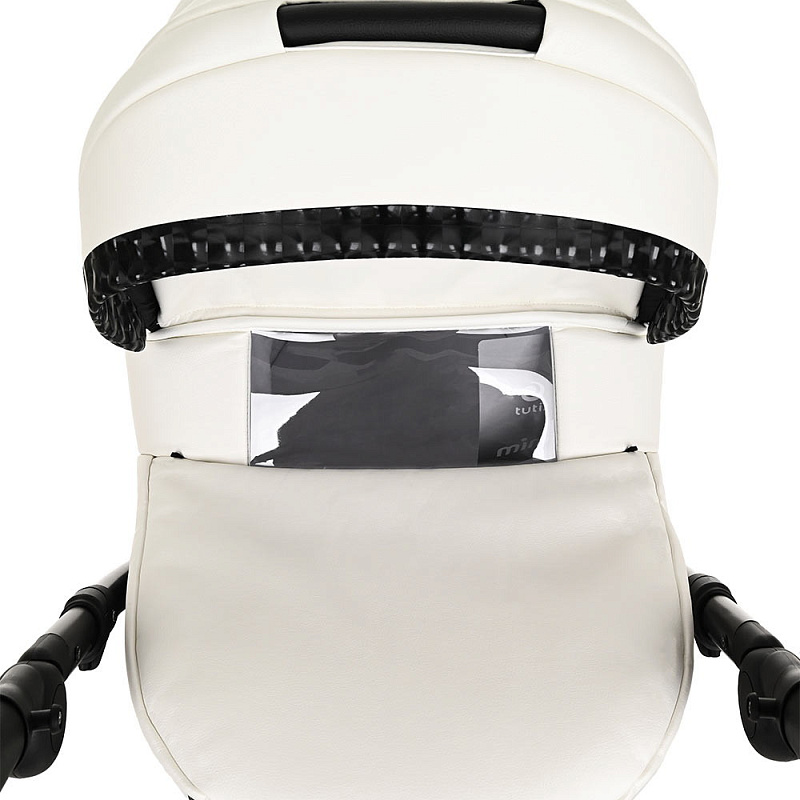 Люлька широкая и глубокая, создает приятный «обволакивающий» эффект для малыша. Он находится будто в коконе, уютном и теплом. Ортопедический дышащий кокосовый матрасик, внутренние борта имеют чехлы из натуральной хлопковой ткани. Подголовник регулируется по высоте, есть панорамное окошко для мамы, накидка от ветра и бортик для малыша. Внешняя ткань из высококачественной экокожи и материалов с эффектом 3D определённо выделится из толпы!