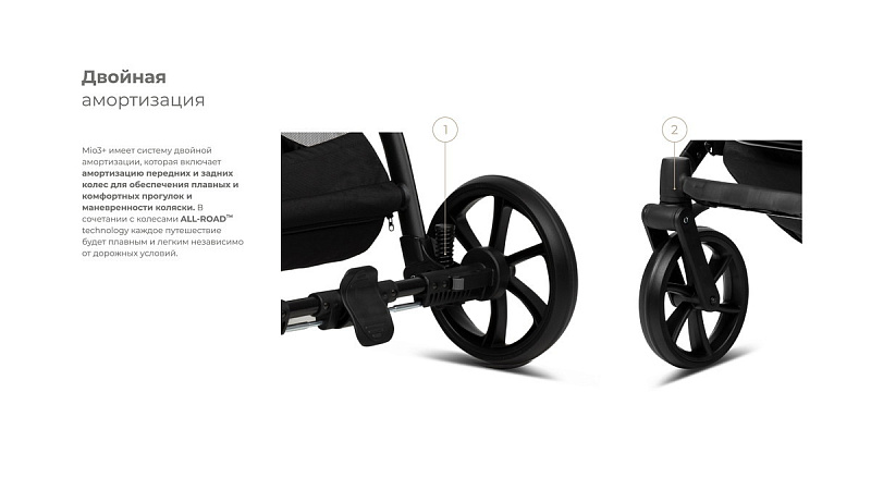 При всех первоклассных технических характеристиках эта коляска уже является премиальной, но маневренное шасси, удобная люлька и просторная прогулочная часть — не единственные достоинства — Mio 3+ полна сюрпризов!
