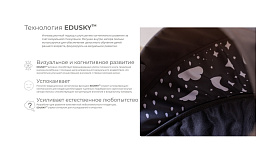 Разнообразные высококонтрастные иллюстрации внутри капюшона способствуют улучшению зрения малыша и укреплению связей между мозгом и глазами. Мы выбрали небесные объекты, такие как солнце, луна, облака и звёзды, чтобы передать зашифрованное послание: «Только небо — предел».