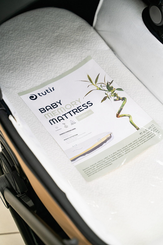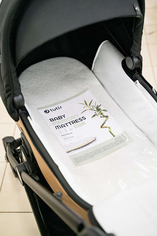 Матрасик с памятью. Он помогает ребёнку принять правильное положение для сна. На нём удобно и переворачиваться. Ткани внутри атибактериальные и гипоаллергенные.