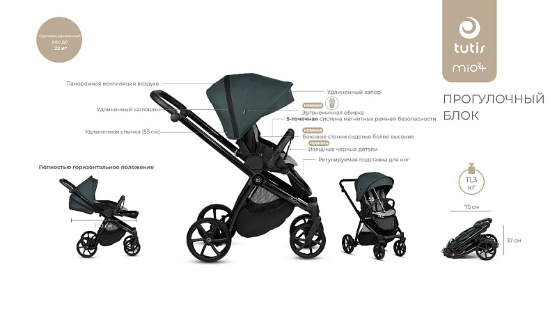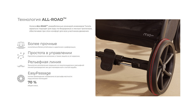 Что делает коляску Tutis Mio 3+ правильным выбором – современные технологии, продуманность функционала, качественные ткани и фурнитура, модные расцветки, лёгкость, проходимость и надёжность!