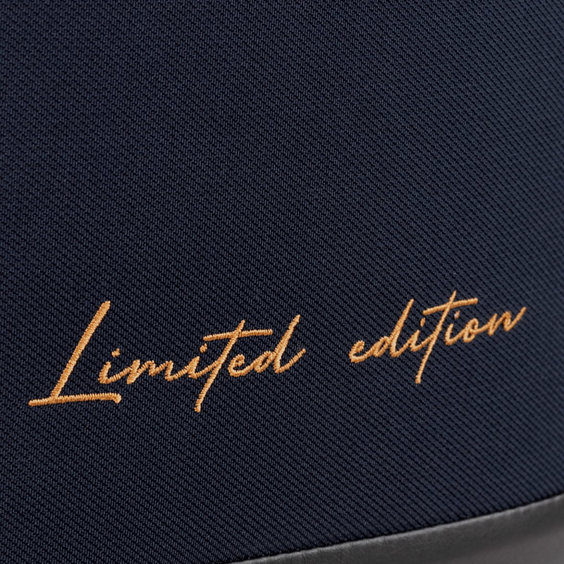 Окутанная глубоким полночным синим, как бездонное ночное небо, эта коляска несет на себе вышитую ласточку, символ надежды.
