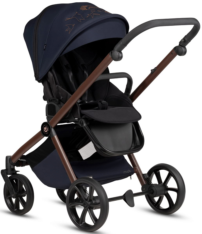 Коляска Mio3+ оснащена двойной системой амортизации: амортизаторы на передних колесах и адаптивная система амортизации на задних колесах обеспечивают плавные и комфортные прогулки с превосходной маневренностью.