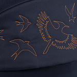 Окутанная глубоким полночным синим, как бездонное ночное небо, эта коляска несет на себе вышитую ласточку, символ надежды.