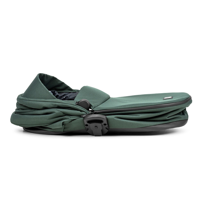 Теперь люлька уменьшается в два раза, что позволяет ее удобно хранить и перевозить. От непогоды защищает накидка на ноги, с дополнительной секцией на магнитных застёжках, которая укрывает от ветра. На капюшоне предусмотрен козырёк, его удобно выдвигать и убирать одной рукой.
