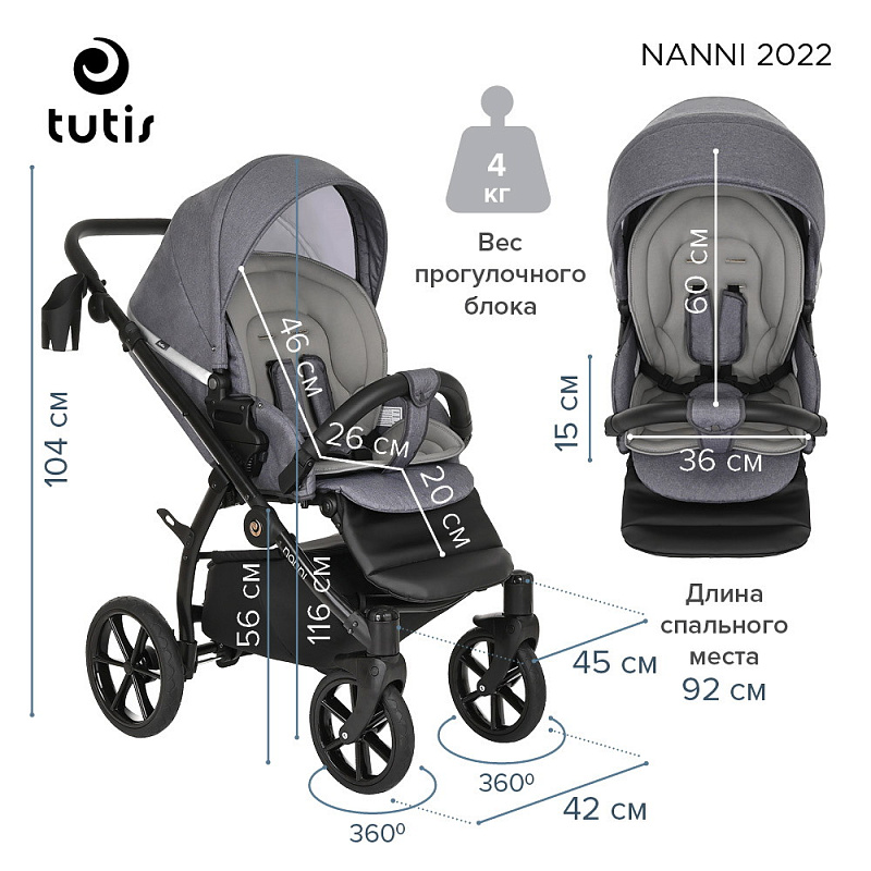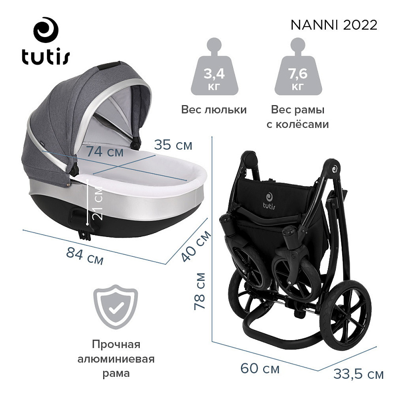 Покупая коляску Tutis Nanni 3 в 1, вы гарантируете своему ребенку долгие годы комфорта и уюта, а себе - удобство и надежность.