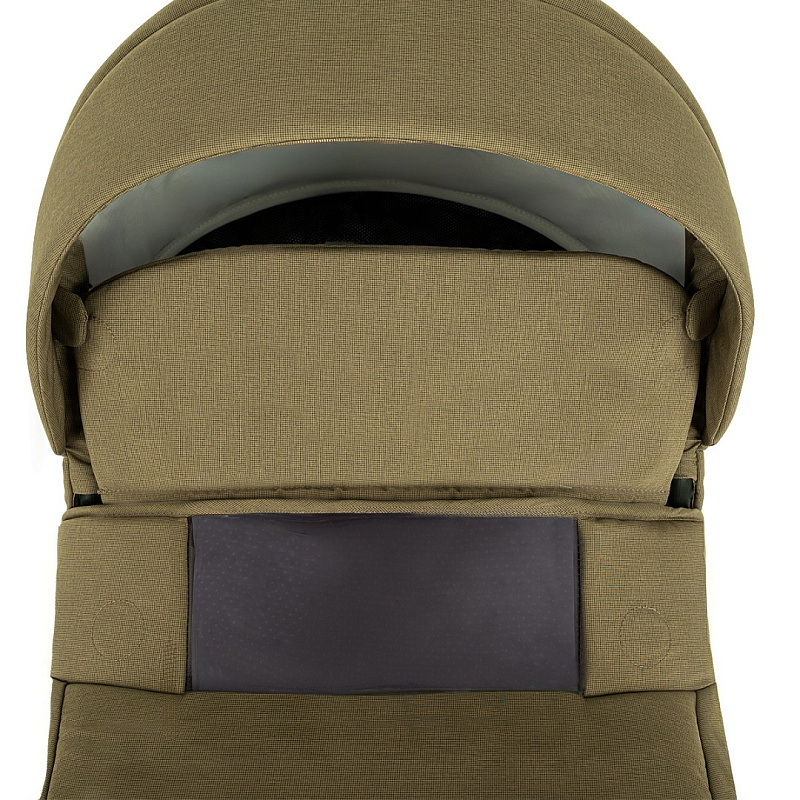 Люлька в коляске Tutis Nanni широкая и глубокая, создает приятный «обволакивающий» эффект для малыша. Он находится будто в коконе, уютном и теплом. Ортопедический дышащий матрасик, внутренние борта имеют чехлы из натуральной хлопковой ткани. Подголовник регулируется по высоте, есть панорамное окошко для мамы, накидка от ветра и бортик для малыша. Внешняя ткань водо- и грязеотталкивающая.