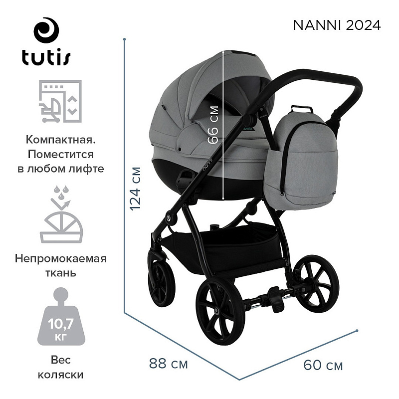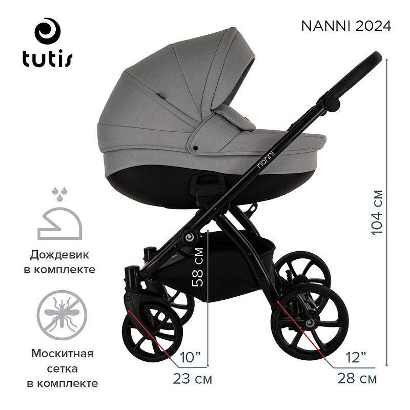 Tutis Nanni Гениальность заключается в простоте - Nanni сочетает в себе большинство качеств высококлассных детских колясок, поэтому эта коляска идеально подходит для ежедневных прогулок по городу и на природе.
