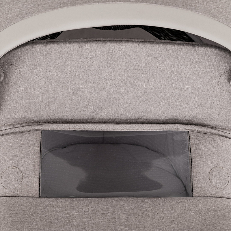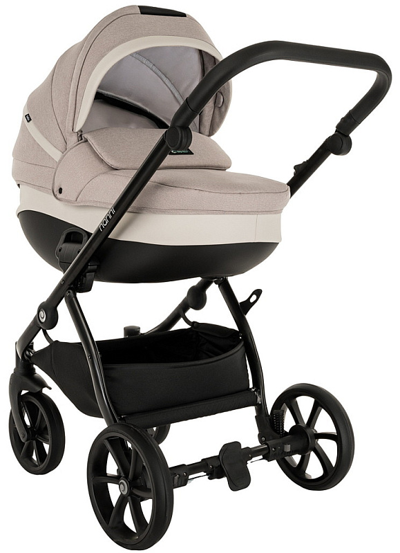 Люлька в коляске Tutis Nanni широкая и глубокая, создает приятный «обволакивающий» эффект для малыша. Он находится будто в коконе, уютном и теплом. Ортопедический дышащий матрасик, внутренние борта имеют чехлы из натуральной хлопковой ткани. Подголовник регулируется по высоте, есть панорамное окошко для мамы, накидка от ветра и бортик для малыша. Внешняя ткань водо- и грязеотталкивающая.