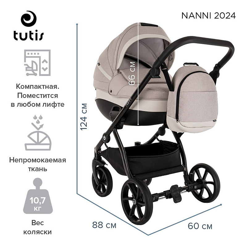 Tutis Nanni Гениальность заключается в простоте - Nanni сочетает в себе большинство качеств высококлассных детских колясок, поэтому эта коляска идеально подходит для ежедневных прогулок по городу и на природе.