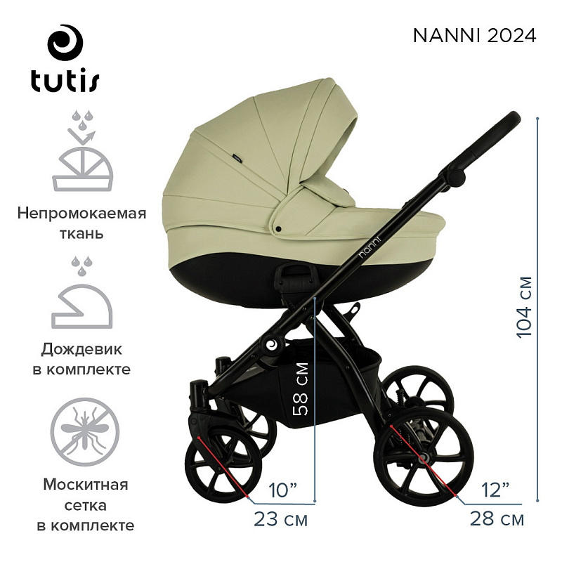 Tutis Nanni Гениальность заключается в простоте - Nanni сочетает в себе большинство качеств высококлассных детских колясок, поэтому эта коляска идеально подходит для ежедневных прогулок по городу и на природе.