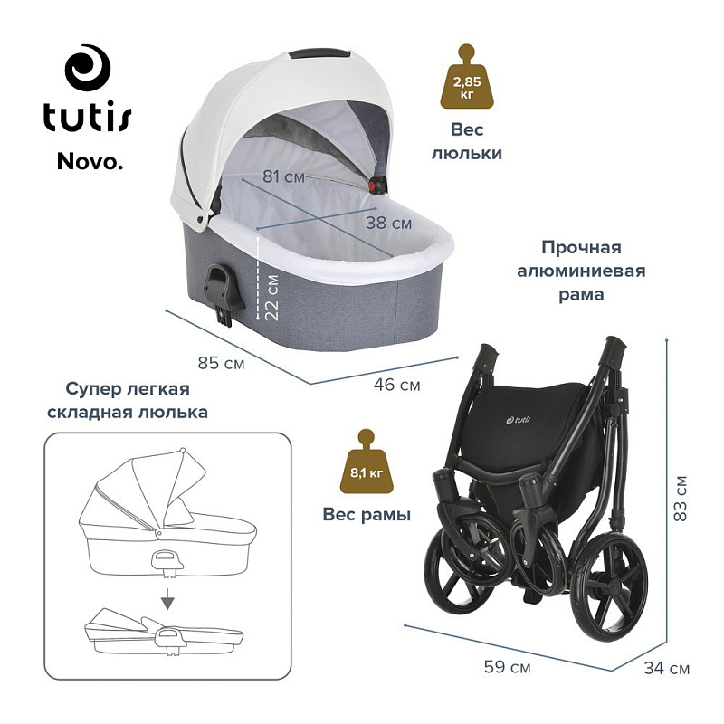 Детская коляска Tutis Novo 3 в 1 1142252 Warm Grey