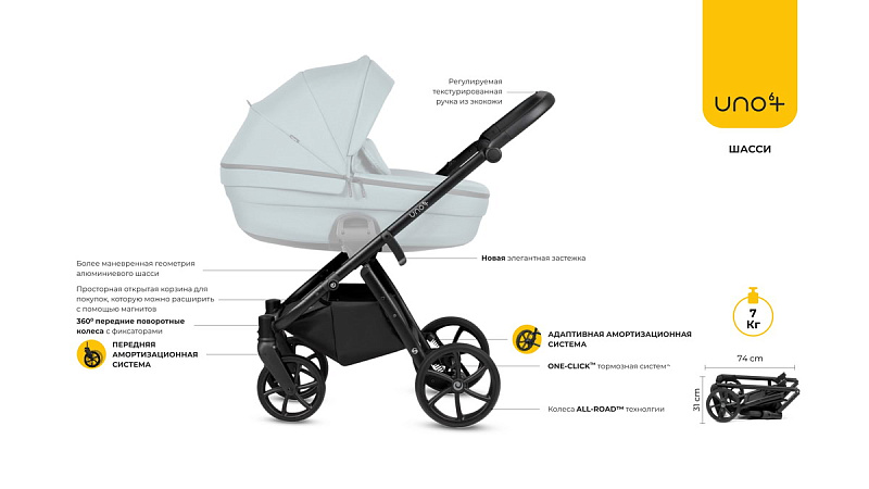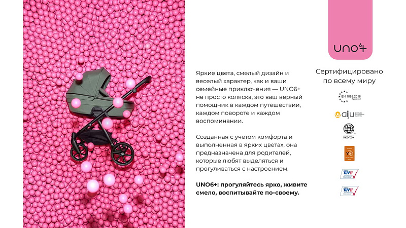 Взрыв красок, дерзкий дизайн и жизнерадостный характер, словно ваши семейные приключения, – UNO6+ не просто коляска, это верный спутник в каждом путешествии, каждом вираже судьбы, в каждом бесценном воспоминании.