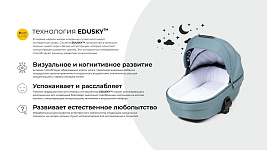 Успокаивает и расслабляет: Помимо традиционных когнитивных преимуществ, EDUSKYTM служит успокаивающим спутником для младенца благодаря тщательно подобранным изображениям на капюшоне люльки, стимулирующим концентрацию, внимание и визуальный комфорт.