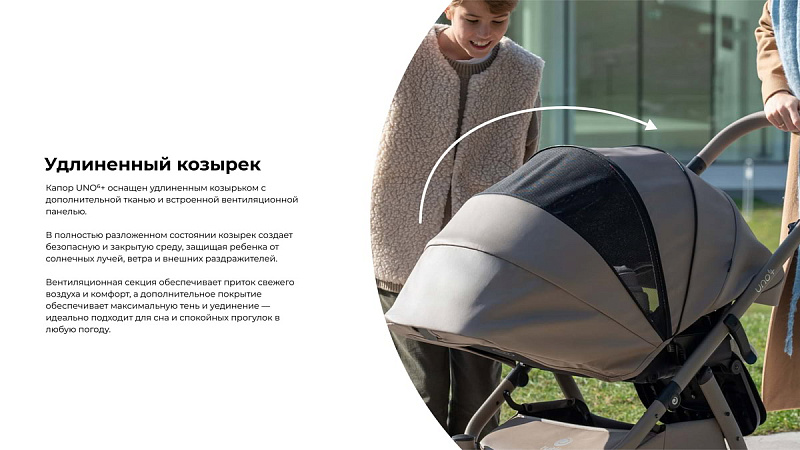 Новый прогулочный блок UNO6+ создан для максимальной защиты и адаптивности. Благодаря полностью закрытым боковым частям и удлиненному капюшону он защищает вашего малыша от ветра, солнца и капризов погоды. Мягкая эргономичная обивка обеспечивает комфорт в каждой поездке, а регулируемые ремни и спинка растут вместе с вашим ребенком, обеспечивая надежную поддержку от новорожденного до подросшего малыша.