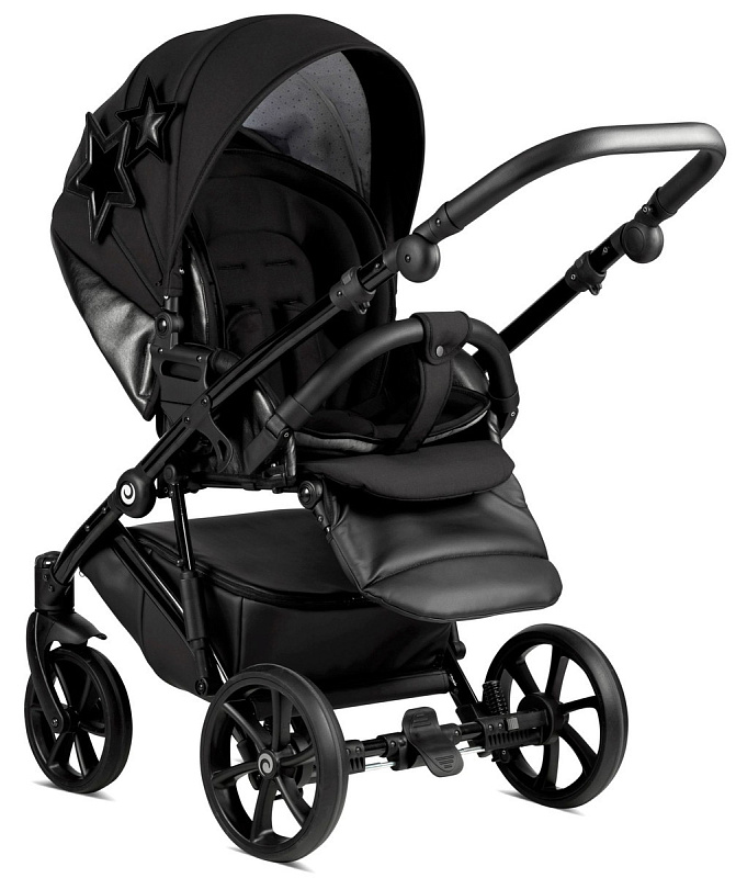 Эксклюзивный дизайн. Звезды на капоре люльки и рюкзаке выделяют эту коллекцию среди других колясок. Всего 3 звездочки: две большие и одна поменьше. Звезды можно снять, переместить или оставить, все на Ваше усмотрение. Бархат, из которого изготовлены звезды, придает ощущение роскоши и очень приятен на ощупь.