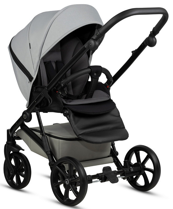 Спинка блока раскладывается до горизонтального положения. При необходимости удлинить спальное место, достаточно поднять регулируемую подножку. Подножка обшита качественной эко-кожей, что облегчает уход за коляской.