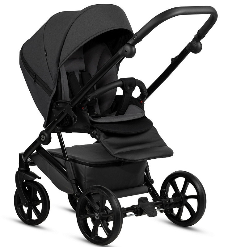 Спинка блока раскладывается до горизонтального положения. При необходимости удлинить спальное место, достаточно поднять регулируемую подножку. Подножка обшита качественной эко-кожей, что облегчает уход за коляской.
