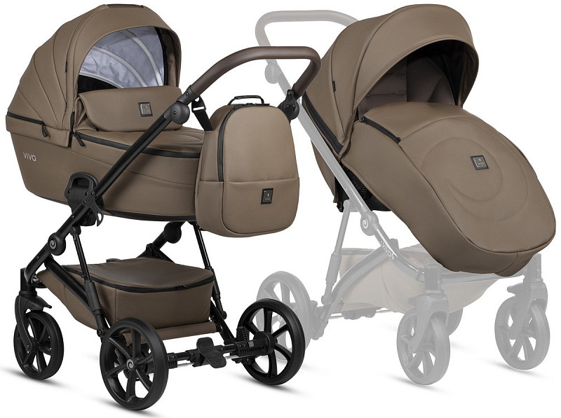 Детская коляска Tutis Viva 5 Plus Leather 2024 3 в 1 с автокреслом Elo Lux EduSky Black 1452083 Cedar
