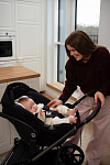 Спинка блока раскладывается до горизонтального положения. При необходимости удлинить спальное место, достаточно поднять регулируемую подножку. Подножка обшита качественной эко-кожей, что облегчает уход за коляской.