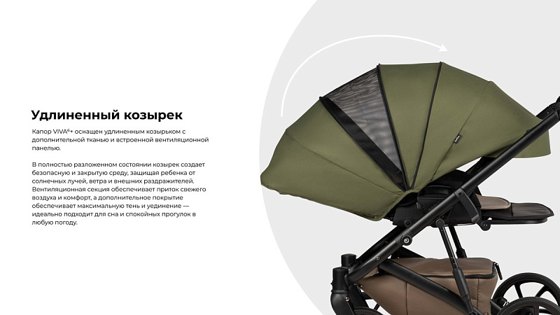 Эти нежные оттенки создают ощущение спокойствия и тепла, идеально подходят для родителей, которые любят сдержанную элегантность. Благодаря тщательно продуманному стилю каждой детали, Viva6+ превращает повседневные прогулки в стильное и элегантное путешествие.