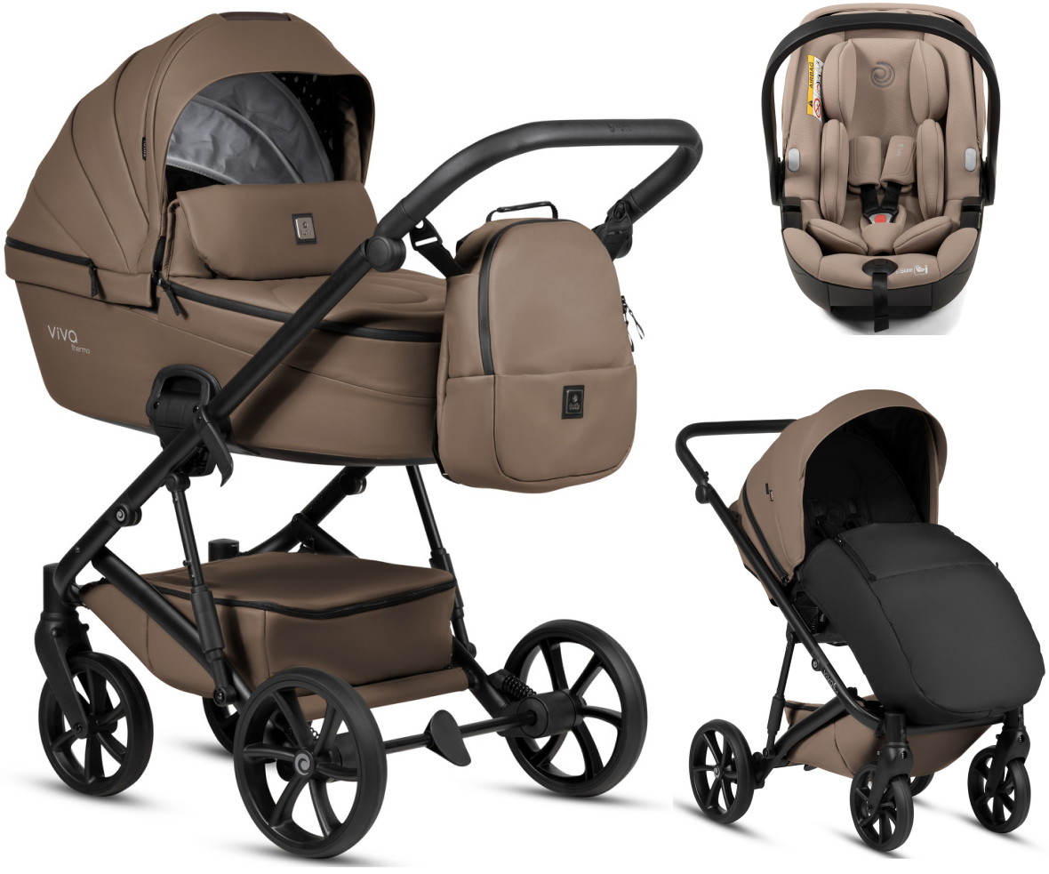 Детская коляска Tutis Viva 6 Plus Leather 3 в 1 с автокреслом Beno Beige 1612083 Cedar