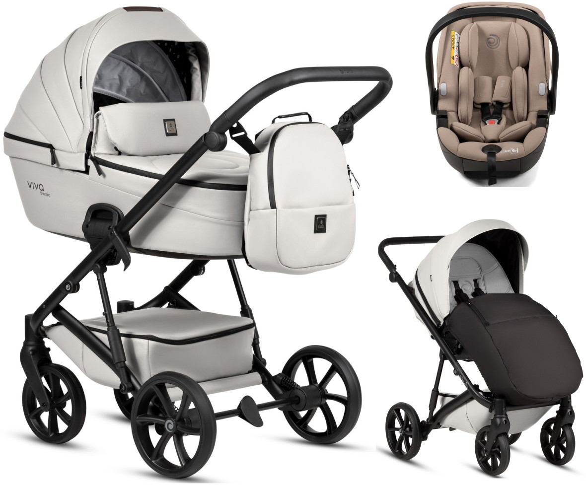 Детская коляска Tutis Viva 6 Plus Leather 3 в 1 с автокреслом Beno Beige 1612085 Cloud