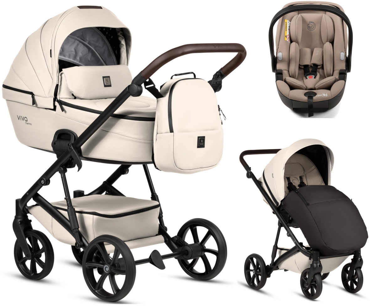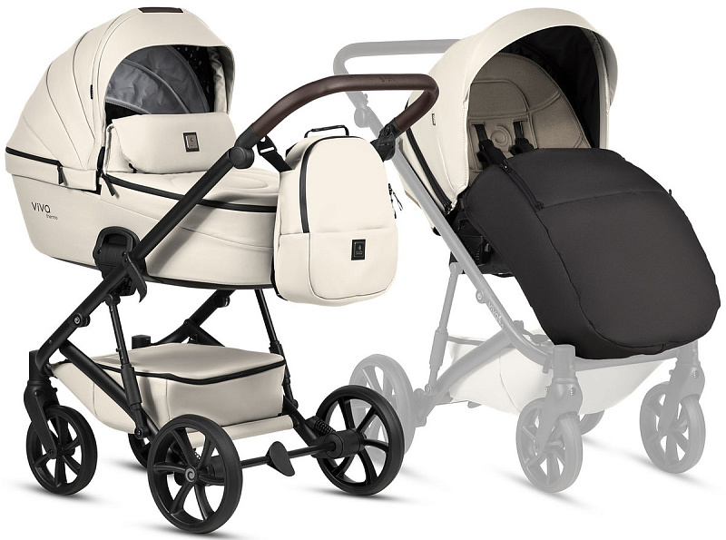 Детская коляска Tutis Viva 6 Plus Leather 3 в 1 с автокреслом Beno Beige 1612086 Vanilla