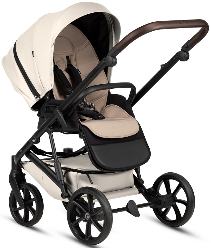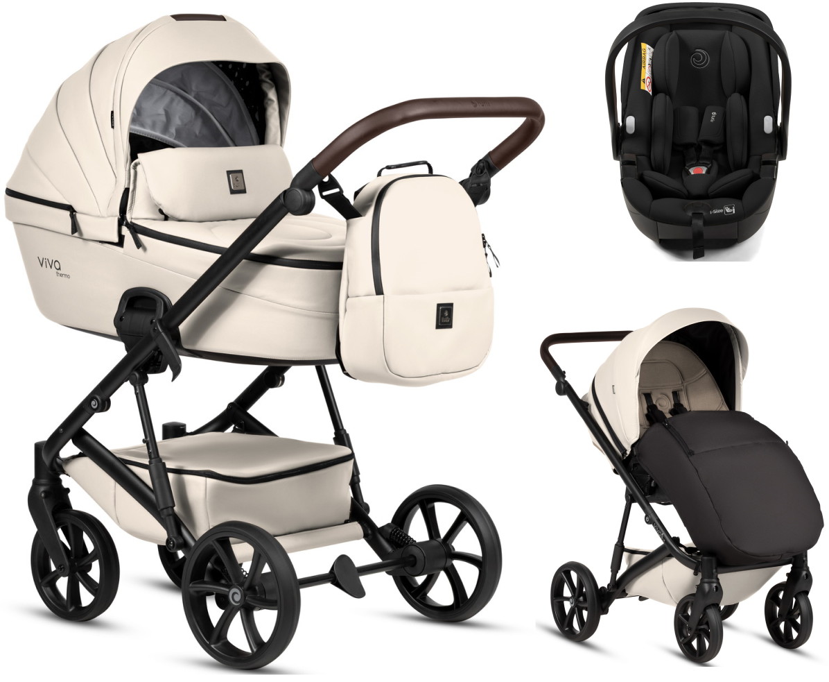 Детская коляска Tutis Viva 6 Plus Leather 3 в 1 с автокреслом Beno Black 1612086 Vanilla