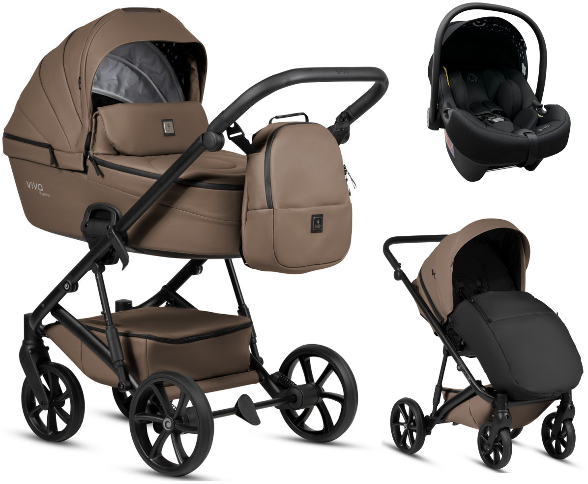 Детская коляска Tutis Viva 6 Plus Leather 3 в 1 с автокреслом Elo Lux EduSky Black 1612083 Cedar