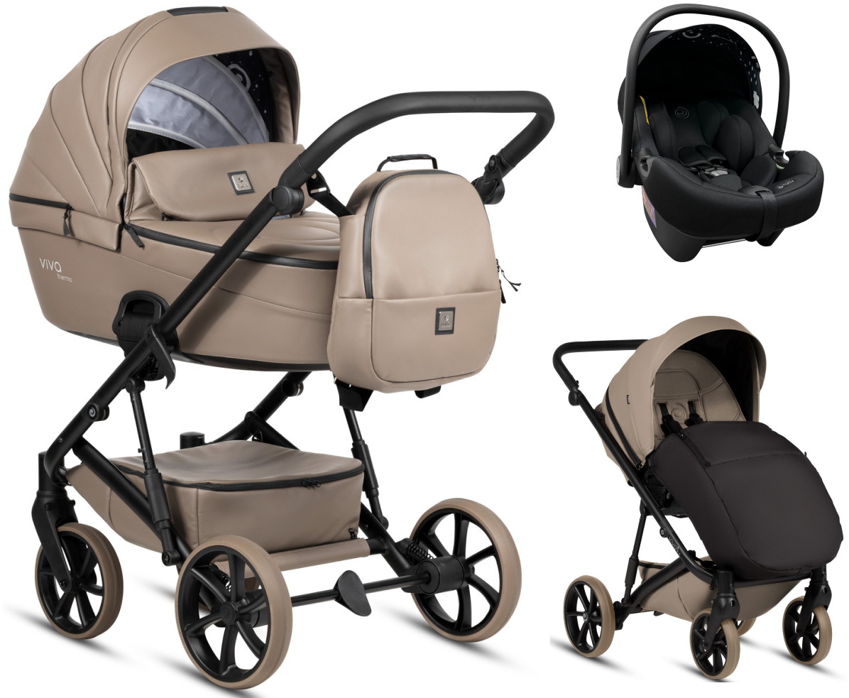 Детская коляска Tutis Viva 6 Plus Leather 3 в 1 с автокреслом Elo Lux EduSky Black 1612149 Cappuccino