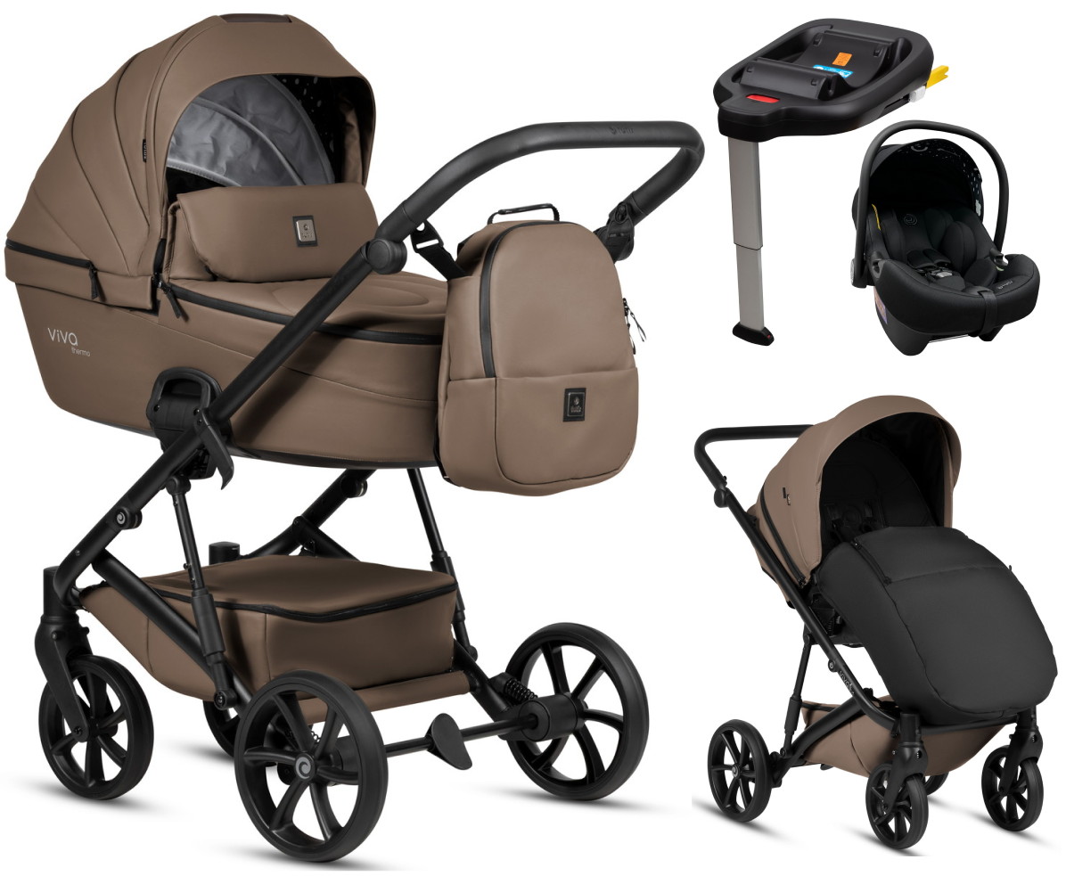 Детская коляска Tutis Viva 6 Plus Leather 4 в 1 с автокреслом Elo Lux EduSky Black и базой 1612083 Cedar