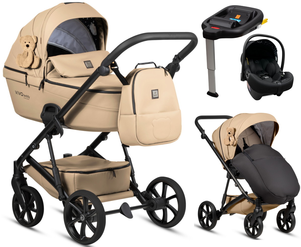 Детская коляска Tutis Viva 6 Plus Teddy 4 в 1 с автокреслом Elo Lux EduSky Black с базой 1612111 Creamy