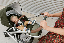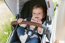 Всю систему ремней в прогулочном блоке можно подтянуть или ослабить одним движением, обеспечивая ребенку комфортную и безопасную поездку.