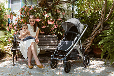 Капор прогулочного сиденья оснащен дополнительной секцией на молнии, а смотровые окошки с москитными сетками позволяют наблюдать за ребенком во время прогулки и создают в коляске комфортный микроклимат.