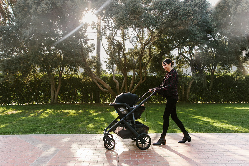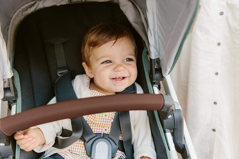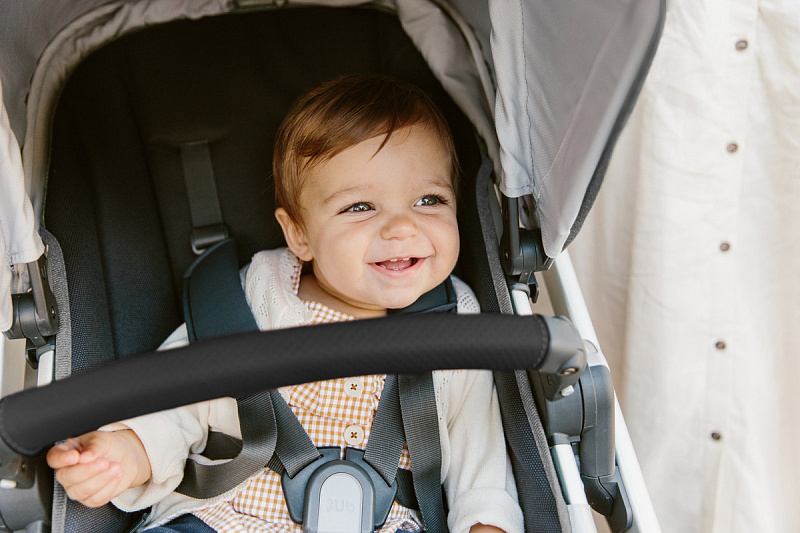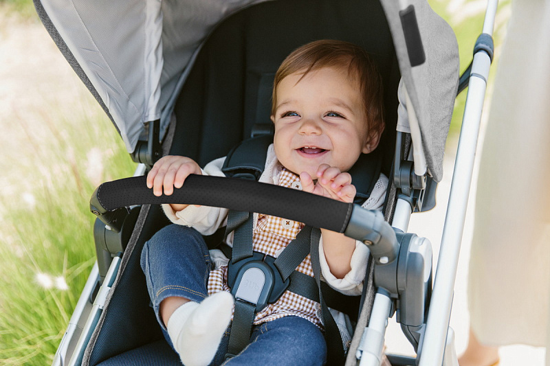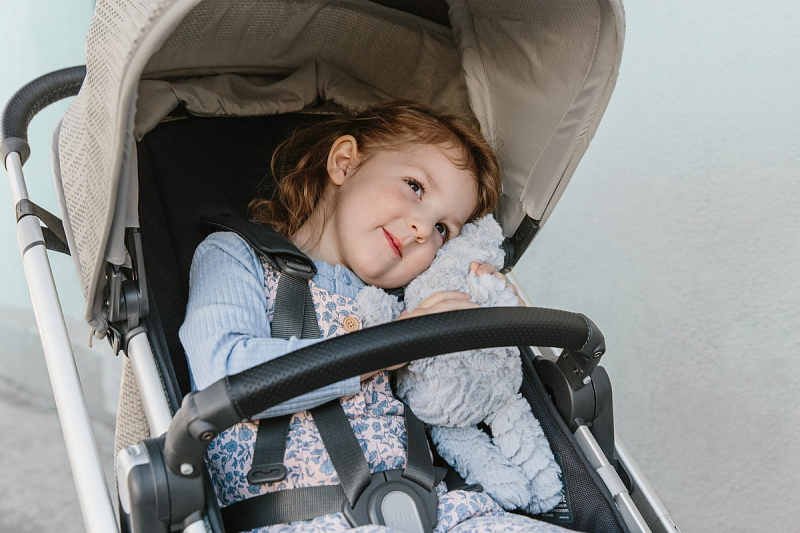 Всю систему ремней в прогулочном блоке можно подтянуть или ослабить одним движением, обеспечивая ребенку комфортную и безопасную поездку.