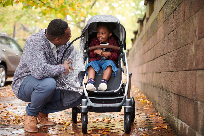 Капор прогулочного сиденья оснащен дополнительной секцией на молнии, а смотровые окошки с москитными сетками позволяют наблюдать за ребенком во время прогулки и создают в коляске комфортный микроклимат.