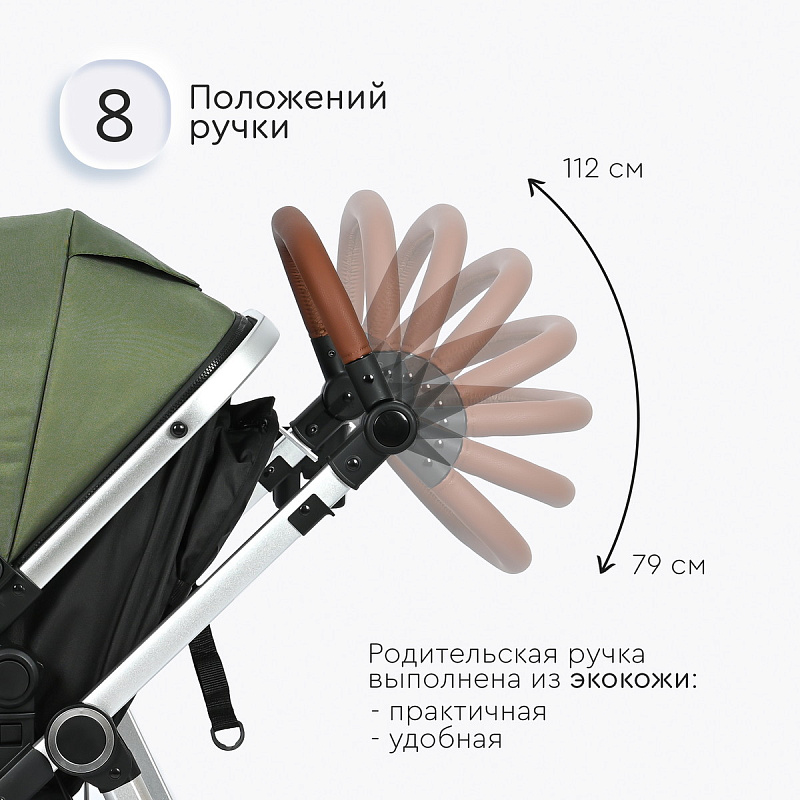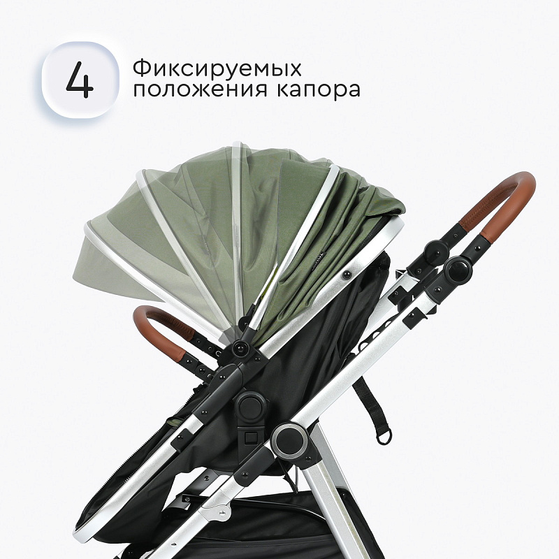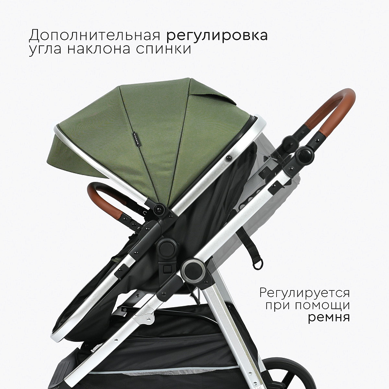 Система регулирования наклона спинки позволит малышу занять удобное положение во время прогулки или сна.