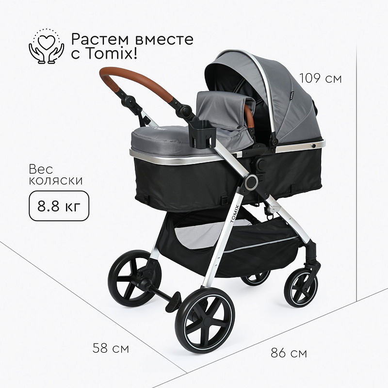 Детская коляска-трансформер 3 в 1 Tomix Sunny Grey