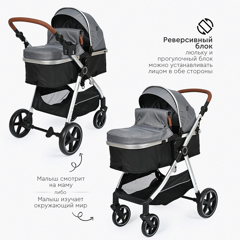 - возможность установки прогулочного сиденья/люльки лицом к маме или по ходу движения;