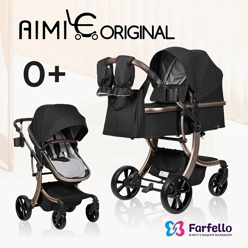 Детская коляска-трансформер Aimile Original Gold чёрное золото