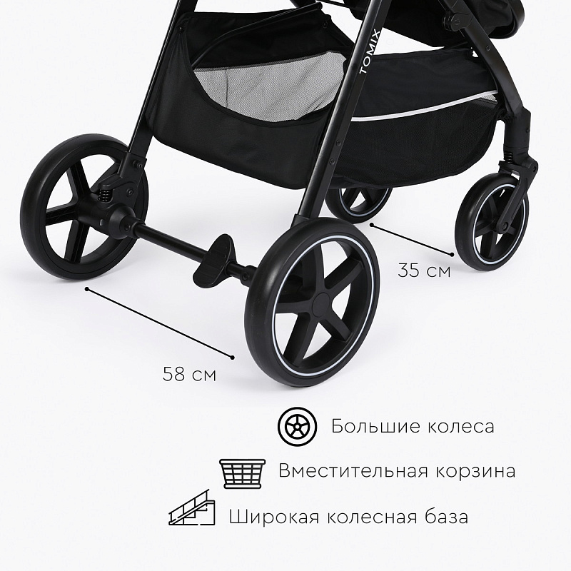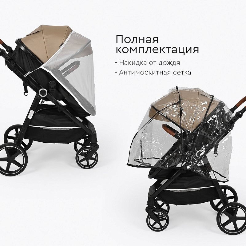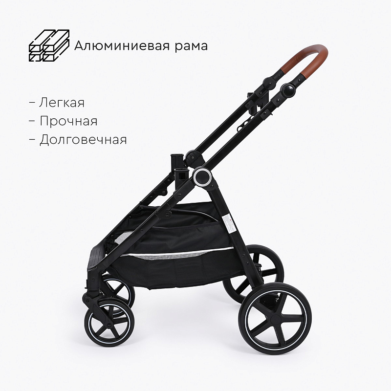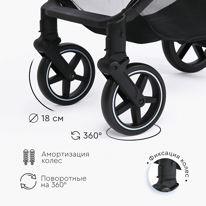 Амортизация передних и задних колес обеспечивает плавный ход коляски.