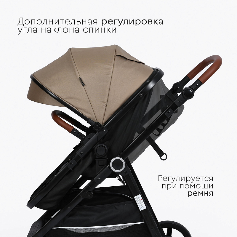 Система регулирования наклона спинки позволит малышу занять удобное положение во время прогулки или сна.