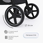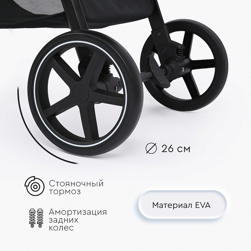 поворотные передние колеса с фиксацией диаметром 18 см, задние колеса – 26 см, материал колес - EVA;
