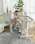 Детская колыбель Carrello Bloom CRL-10304 - это уникальная приставная кроватка, которая обладает рядом инновационных функций, созданных для обеспечения комфорта и безопасности вашего малыша. Она предназначена для использования с самого рождения и до 12 месяцев, и может быть использована как отдельно стоящая кроватка или приставная кроватка для совместного сна с родителями.