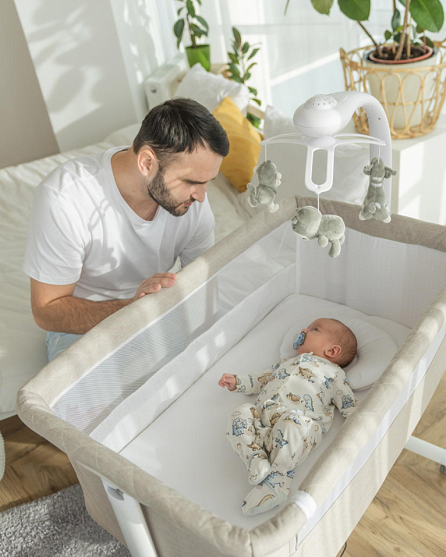 В комплекте с колыбелью Carrello Bloom поставляется мобиль-карусель с тремя игрушками и ночником-проектором. Это не только развлечет вашего ребенка, но и создаст уютную атмосферу для его сна. Кроме того, в комплект входят матрасик с наматрасником и подушка под голову, чтобы обеспечить максимальный комфорт вашему малышу.