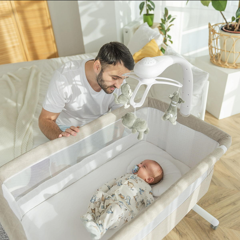 В комплекте с колыбелью Carrello Bloom поставляется мобиль-карусель с тремя игрушками и ночником-проектором. Это не только развлечет вашего ребенка, но и создаст уютную атмосферу для его сна. Кроме того, в комплект входят матрасик с наматрасником и подушка под голову, чтобы обеспечить максимальный комфорт вашему малышу.